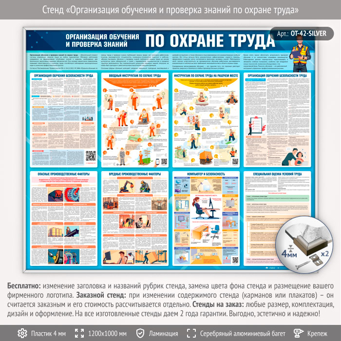 Стенд «Организация обучения и проверка знаний по охране труда» (OT-42-SILVER) в Уфе купить