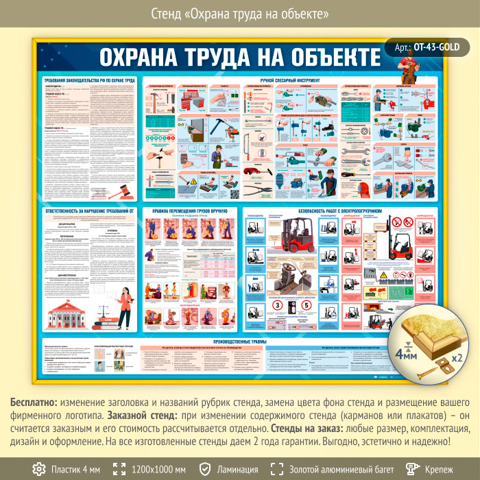 Стенд «Охрана труда на объекте» (OT-43-GOLD) в Уфе купить