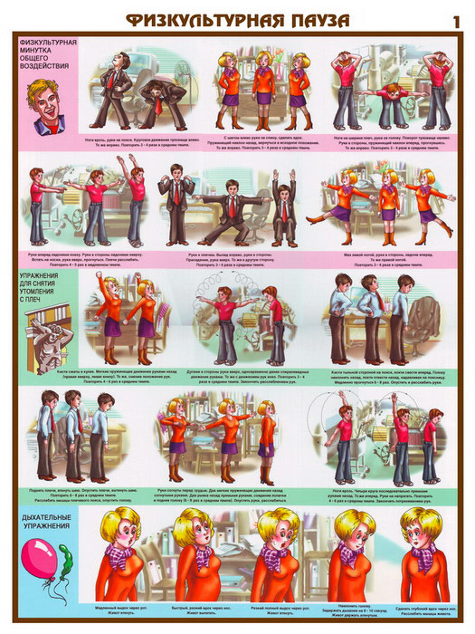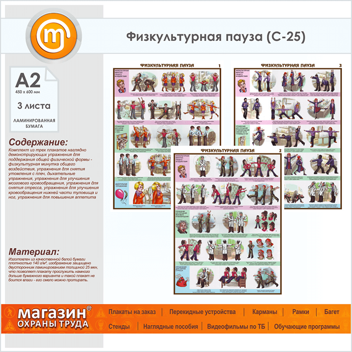 Плакаты «Физкультурная пауза» (С-25, ламинированная бумага, А2, 3 листа) в Уфе купить