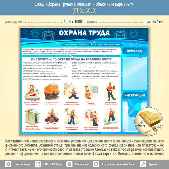 Стенд «Охрана труда» с плоским и объемным карманами (OT-01-GOLD) в Уфе купить