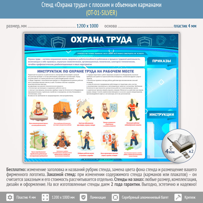 Стенд «Охрана труда» с плоским и объемным карманами (OT-01-SILVER) в Уфе купить