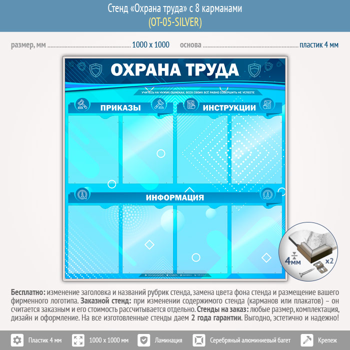 Стенд «Охрана труда» с 8 карманами (OT-05-SILVER) в Уфе купить