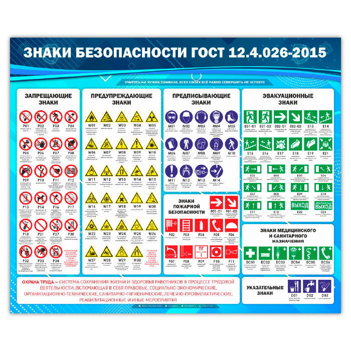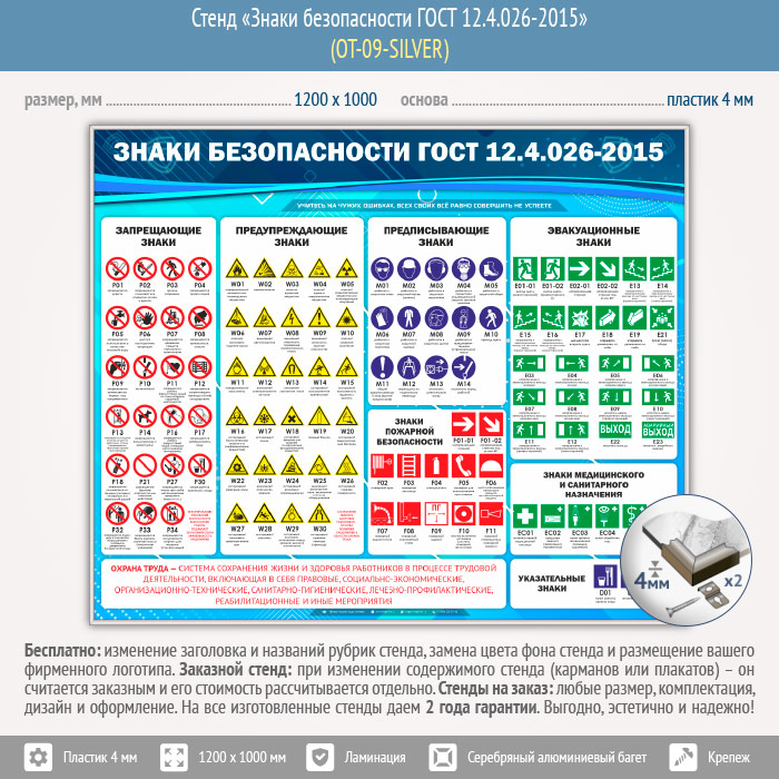 Стенд «Знаки безопасности ГОСТ 12.4.026-2015» (OT-09-SILVER) в Уфе купить
