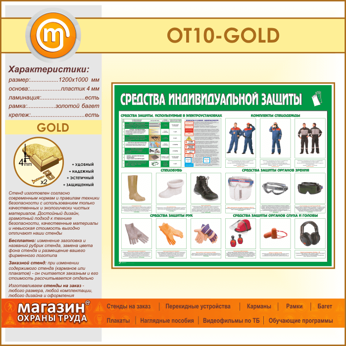 Стенд «Средства индивидуальной защиты» (OT-10-GOLD) в Уфе купить
