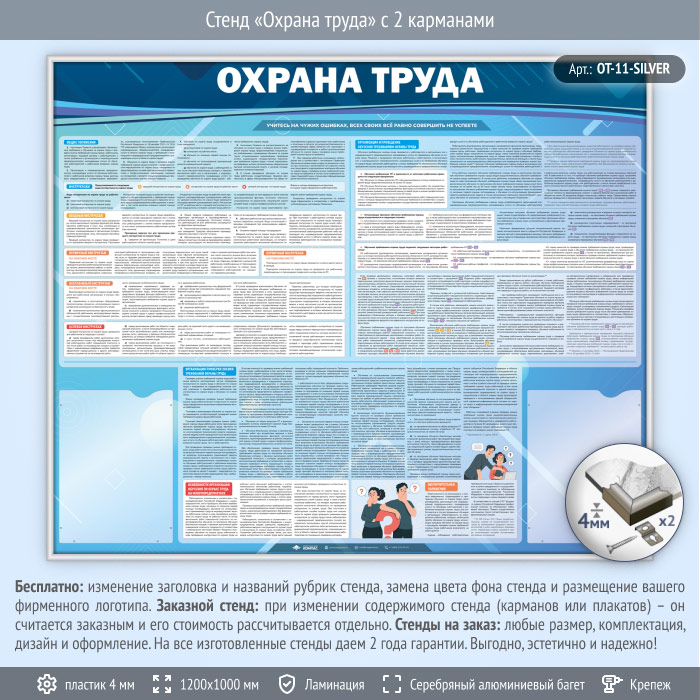 Стенд «Охрана труда» с 2 карманами (OT-11-SILVER) в Уфе купить