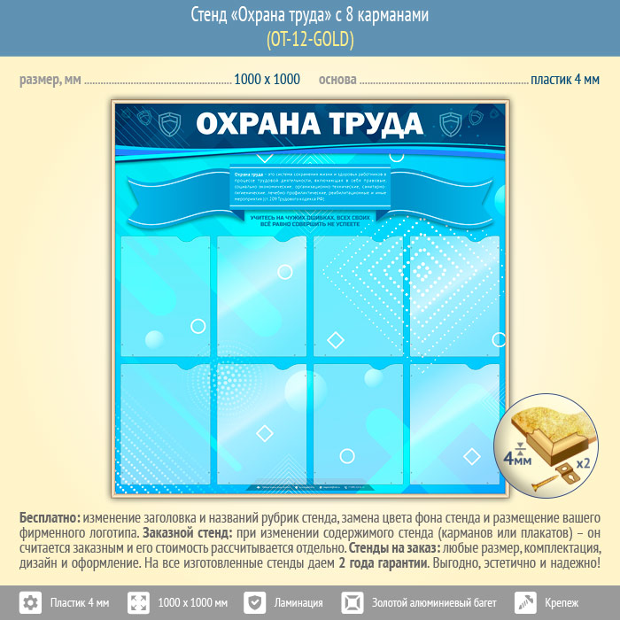 Стенд «Охрана труда» с 8 карманами (OT-12-GOLD) в Уфе купить