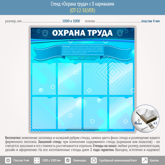 Стенд «Охрана труда» с 8 карманами (OT-12-SILVER) в Уфе купить