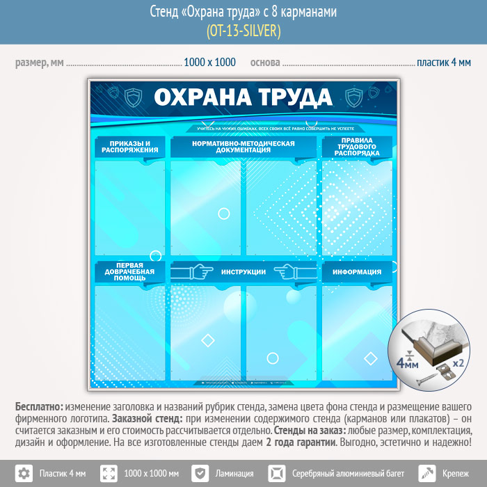 Стенд «Охрана труда» с 8 карманами (OT-13-SILVER) в Уфе купить