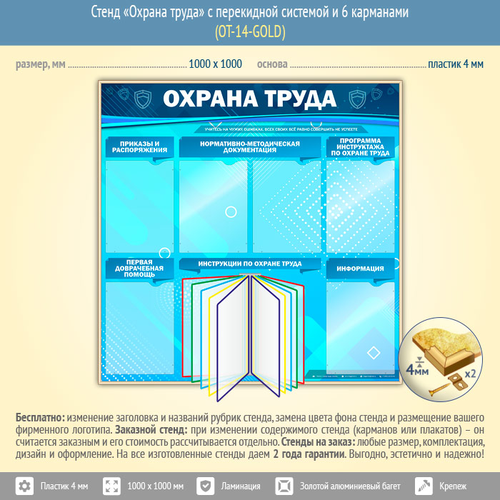 Стенд «Охрана труда» с перекидной системой и 6 карманами (OT-14-GOLD) в Уфе купить