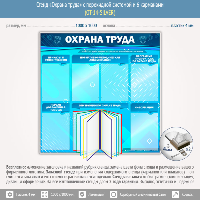 Стенд «Охрана труда» с перекидной системой и 6 карманами (OT-14-SILVER) в Уфе купить
