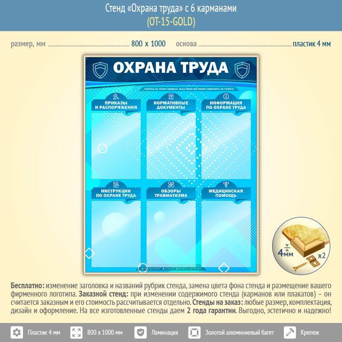 Стенд «Охрана труда» с 6 карманами (OT-15-GOLD) в Уфе купить