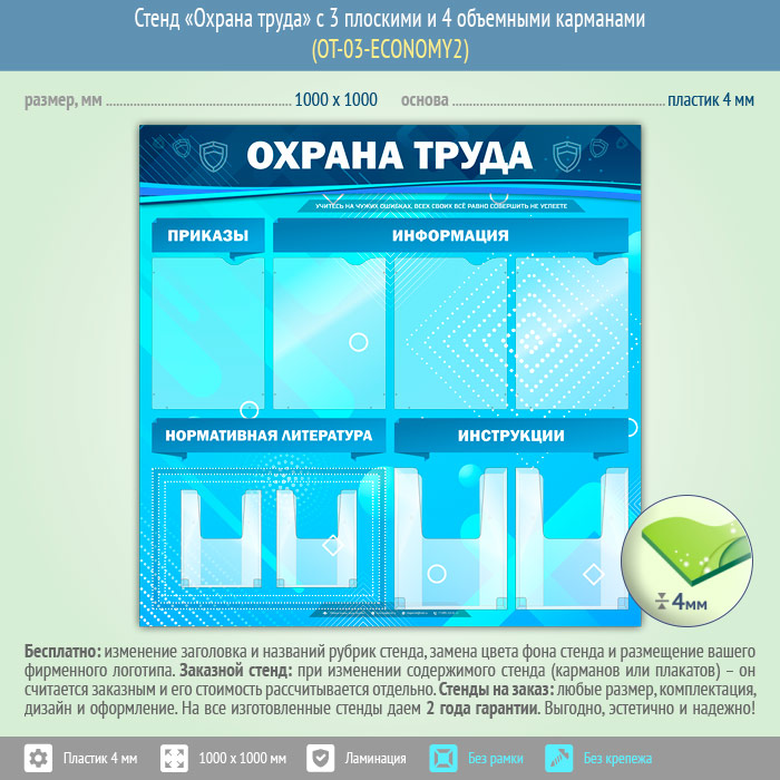 Стенд «Охрана труда» с 4 плоскими и 4 объемными карманами (OT-03-ECONOMY2) в Уфе купить