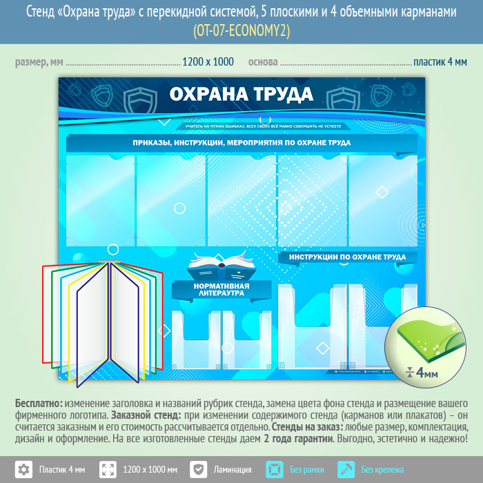 Стенд «Охрана труда» с перекидной системой, 5 плоскими и 4 объемными карманами (OT-07-ECONOMY2) в Уфе купить