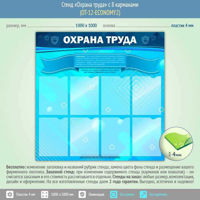 Стенд «Охрана труда» с 8 карманами (OT-12-ECONOMY2) в Уфе купить