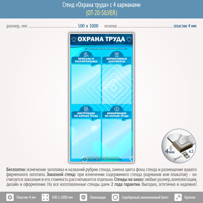 Стенд «Охрана труда» с 4 карманами (OT-20-SILVER) в Уфе купить