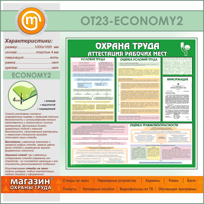 Стенд «Охрана труда. Аттестация рабочих мест» с карманом (OT-23-ECONOMY2) в Уфе купить