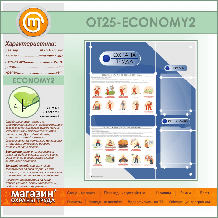 Стенд «Охрана труда» с 2 плоскими карманами (OT-25-ECONOMY2) в Уфе купить
