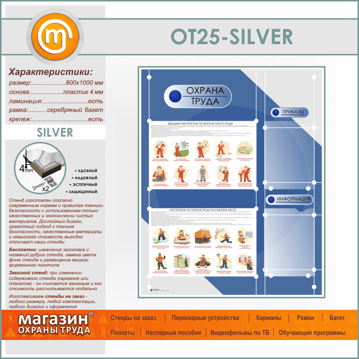 Стенд «Охрана труда» с 2 плоскими карманами (OT-25-SILVER) в Уфе купить