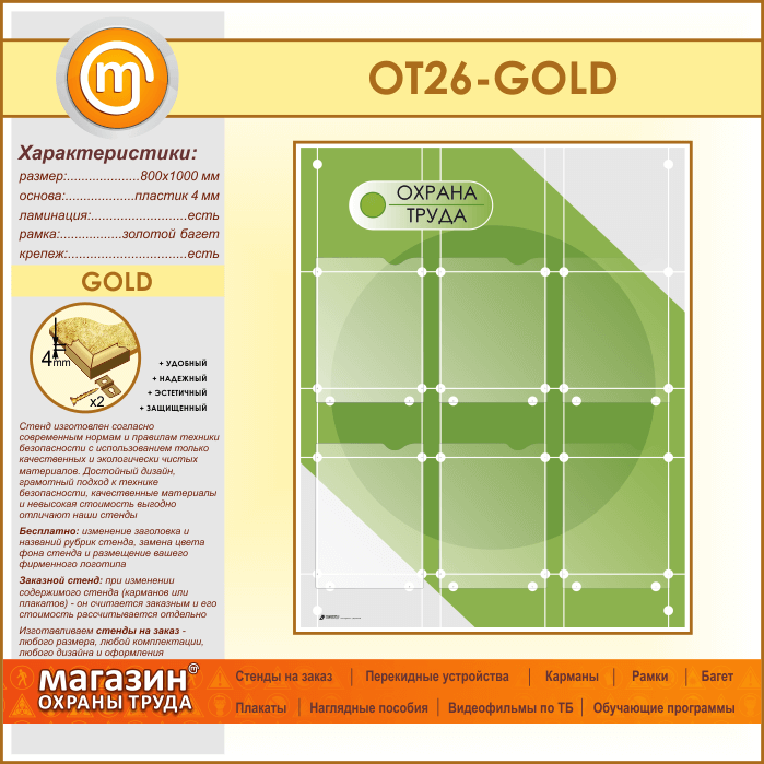Стенд «Охрана труда» с 6 плоскими карманами (OT-26-GOLD) в Уфе купить