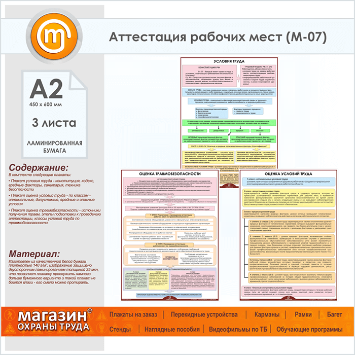 Плакаты «Аттестация рабочих мест» (М-07, ламинированная бумага, А2, 3 листа) в Уфе купить