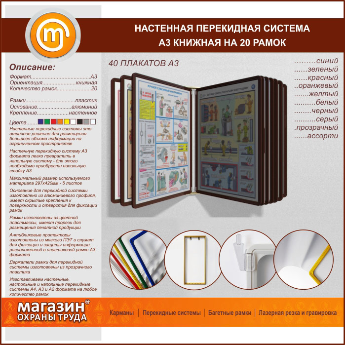 Настенная перекидная система А3 на 20 рамок книжная в Уфе купить