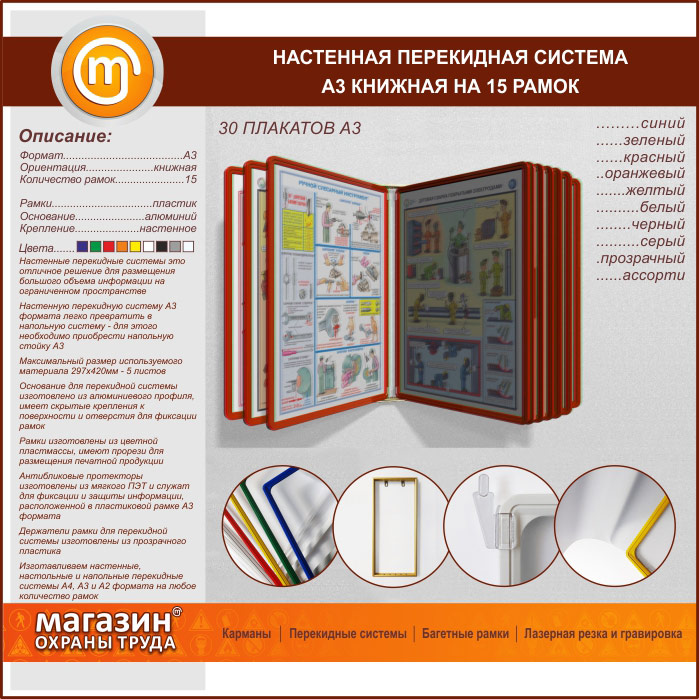 Настенная перекидная система А3 на 15 рамок книжная в Уфе купить