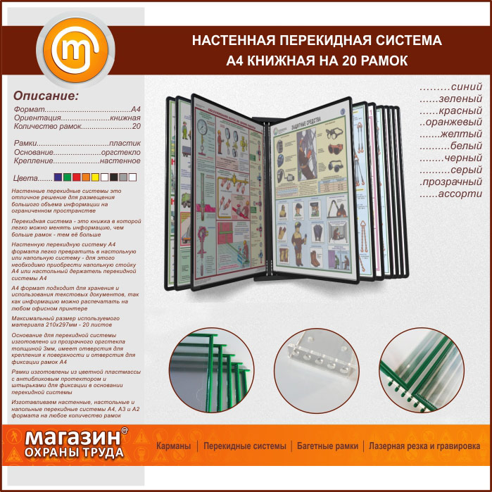 Настенная перекидная система А4 на 20 рамок книжная в Уфе купить