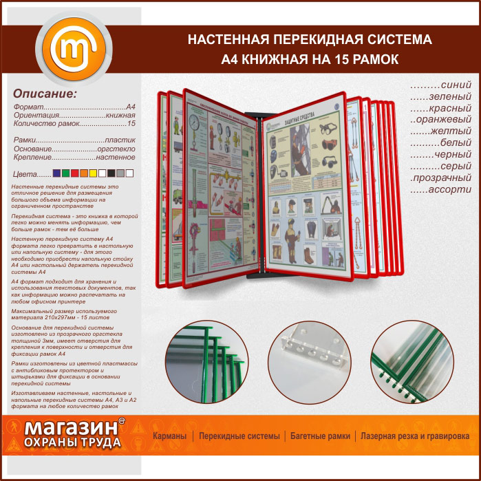 Настенная перекидная система А4 на 15 рамок книжная в Уфе купить