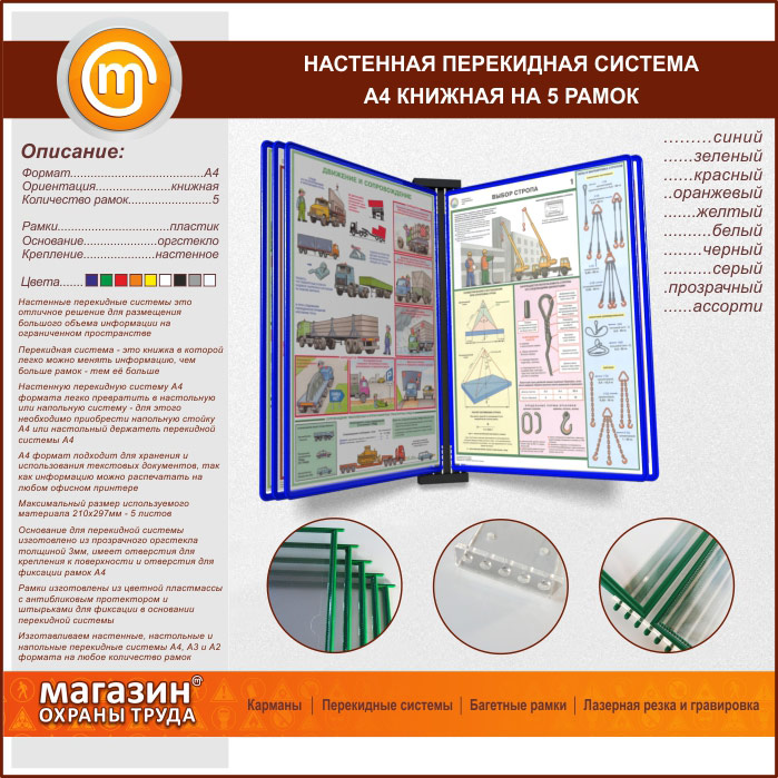 Настенная перекидная система А4 на 5 рамок книжная в Уфе купить