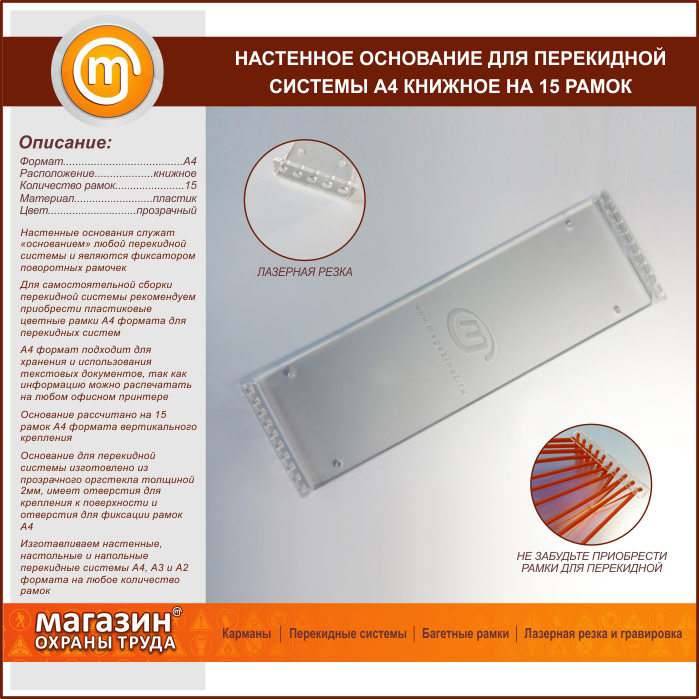 Настенное основание для перекидной системы А4 книжное на 15 рамок (оргстекло) в Уфе купить