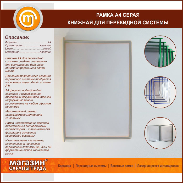 Рамка А4 серая книжная в Уфе купить