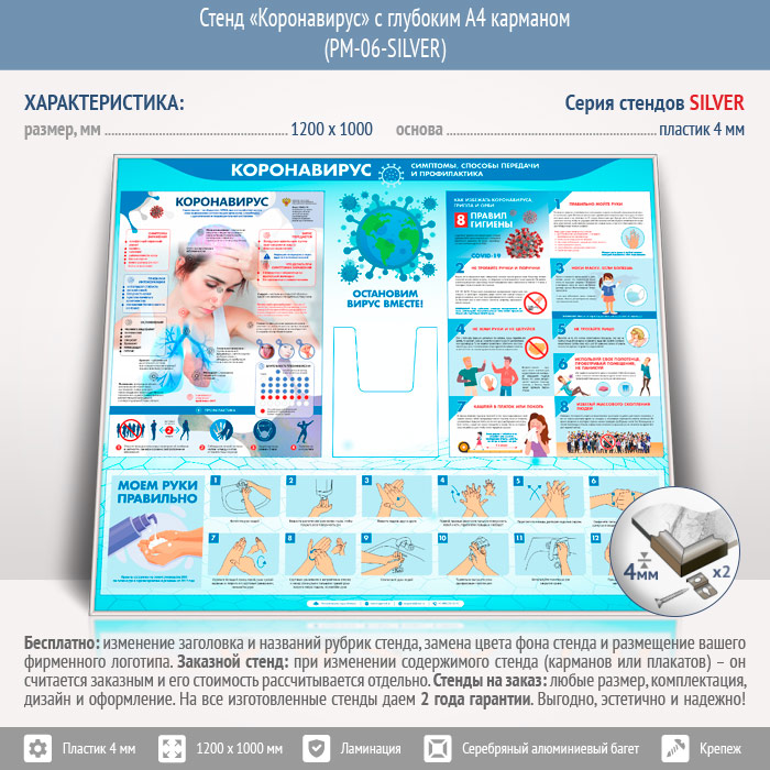 Стенд «Коронавирус» с глубоким А4 карманом (PM-06-SILVER) в Уфе купить