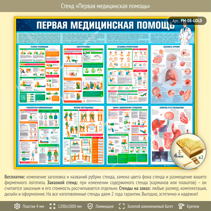 Стенд «Первая медицинская помощь» (PM-08-GOLD) в Уфе купить