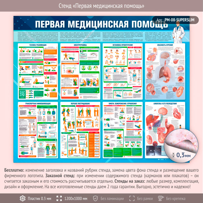 Стенд «Первая медицинская помощь» (PM-08-SUPERSLIM) в Уфе купить