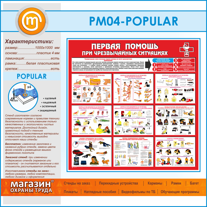 Стенд «Первая помощь при чрезвычайных ситуациях» (PM-04-POPULAR) в Уфе купить