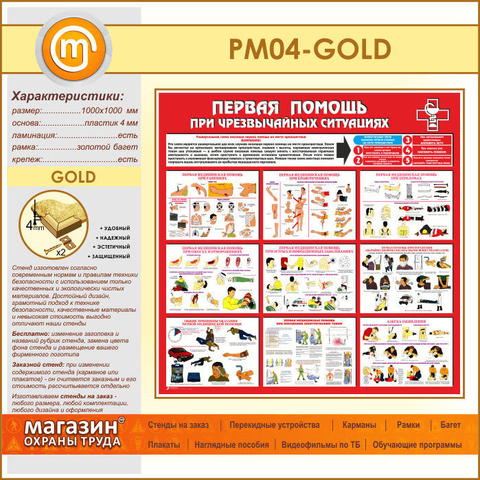 Стенд «Первая помощь при чрезвычайных ситуациях» (PM-04-GOLD) в Уфе купить
