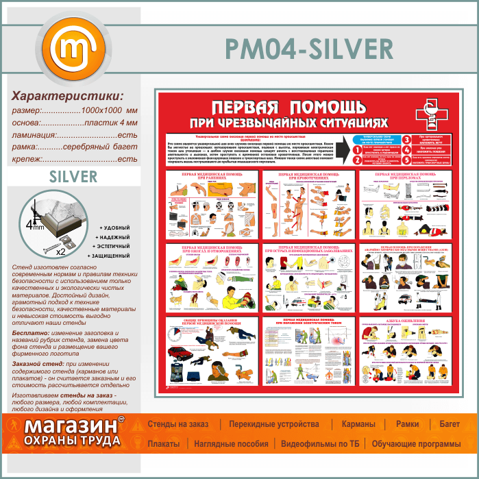 Стенд «Первая помощь при чрезвычайных ситуациях» (PM-04-SILVER) в Уфе купить