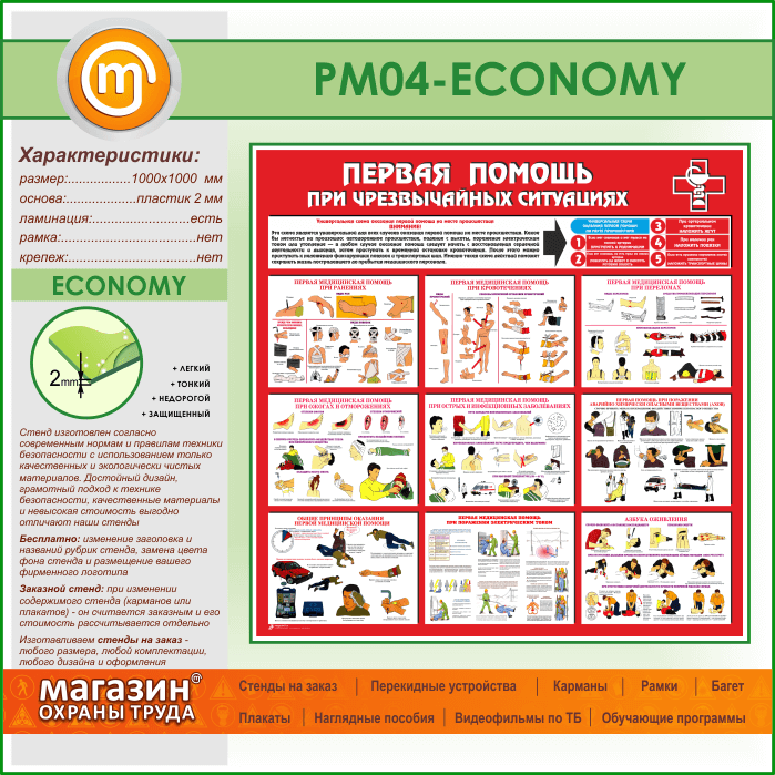 Стенд «Первая помощь при чрезвычайных ситуациях» (PM-04-ECONOMY) в Уфе купить