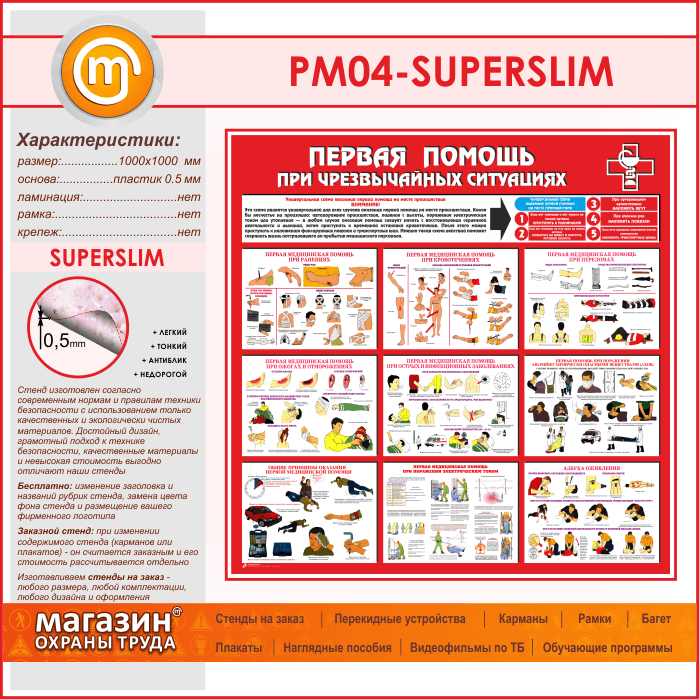 Стенд «Первая помощь при чрезвычайных ситуациях» (PM-04-SUPERSLIM) в Уфе купить