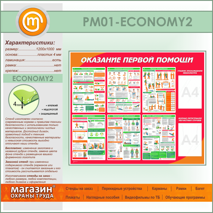 Стенд «Оказание первой помощи» с плоским и объемным карманами (PM-01-ECONOMY2) в Уфе купить