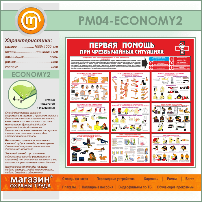 Стенд «Первая помощь при чрезвычайных ситуациях» (PM-04-ECONOMY2) в Уфе купить