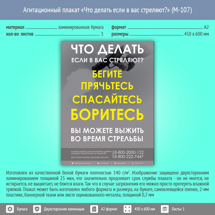 Плакат «Что делать если в вас стреляют?» (М-107, ламинированная бумага, А2, 1 лист) в Уфе купить