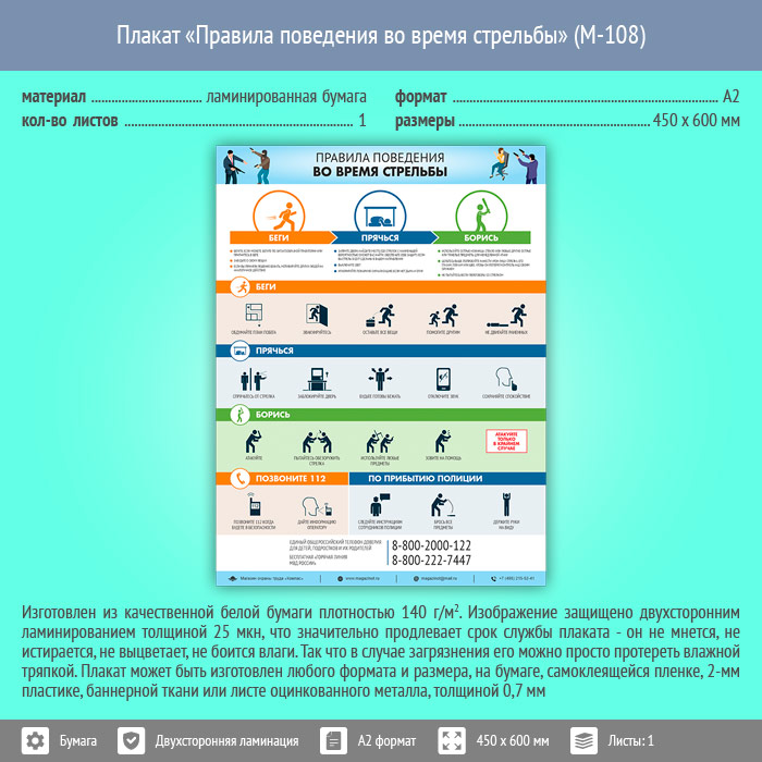 Плакат «Правила поведения во время стрельбы» (М-108, ламинированная бумага, А2, 1 лист) в Уфе купить