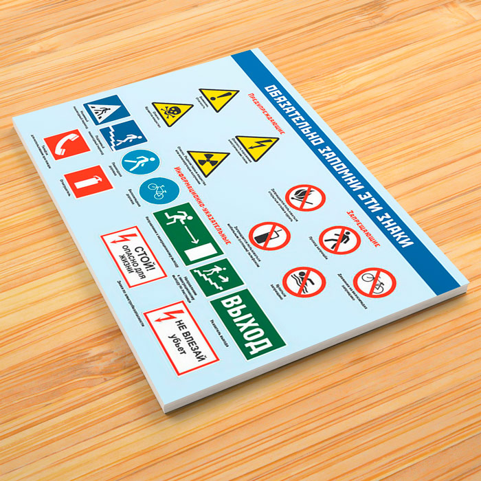 - Плакат «Обязательно запомни эти знаки» – основные знаки безопасности, которые должен знать каждый