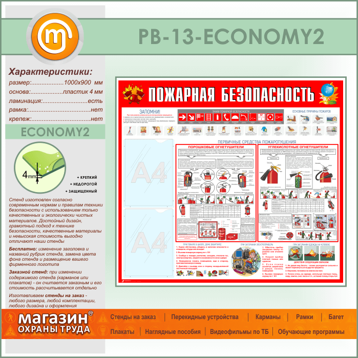 Стенд «Пожарная безопасность» с 2 карманами (PB-13-ECONOMY2) в Уфе купить