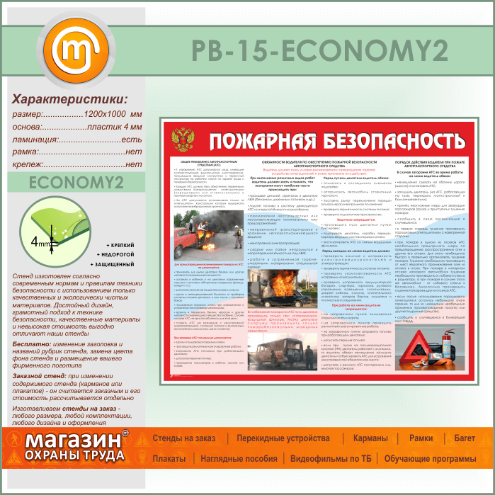 Стенд «Пожарная безопасность на автотранспорте» (PB-15-ECONOMY2) в Уфе купить