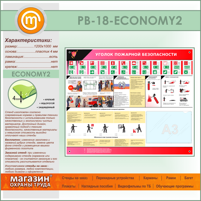 Стенд «Уголок пожарной безопасности» с карманом А3 формата (PB-18-ECONOMY2) в Уфе купить