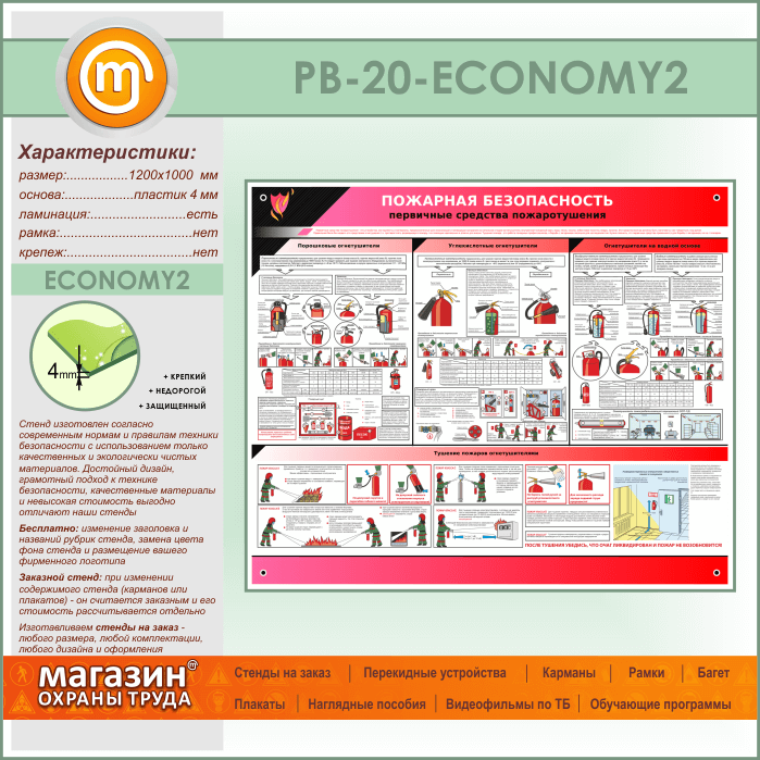 Стенд «Пожарная безопасность. Первичные средства пожаротушения» (PB-20-ECONOMY2) в Уфе купить