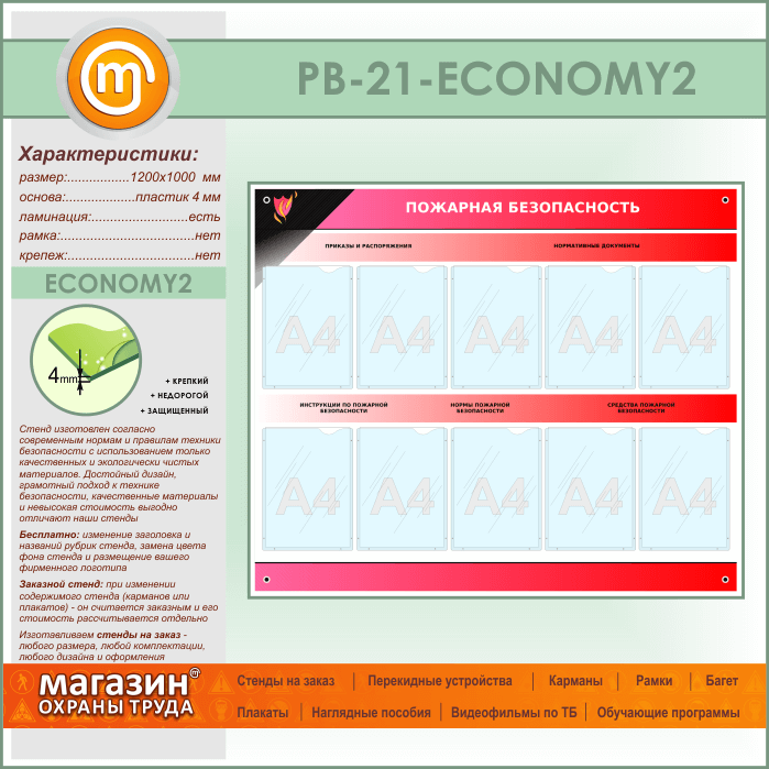 Стенд «Пожарная безопасность» с 10 карманами (PB-21-ECONOMY2) в Уфе купить