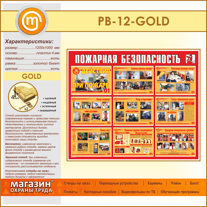 Стенд «Пожарная безопасность. Действия при пожаре» (PB-12-GOLD) в Уфе купить